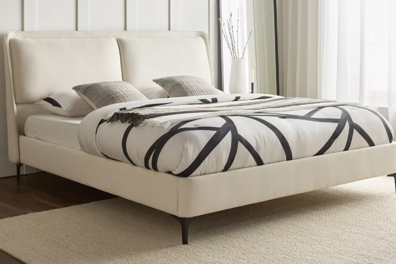Scandinavian Upholstered Bed Frame with Wooden Legs