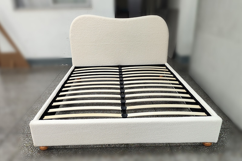 Curved Headboard Upholstered Bed Frame with Wooden Legs