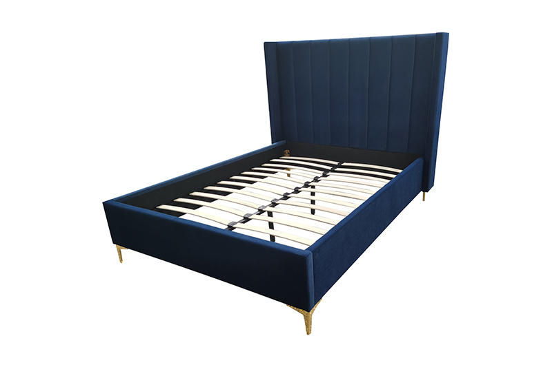 Elegant Blue Velvet Upholstered Bed Frame with Gold Legs – Luxury Platform Bed