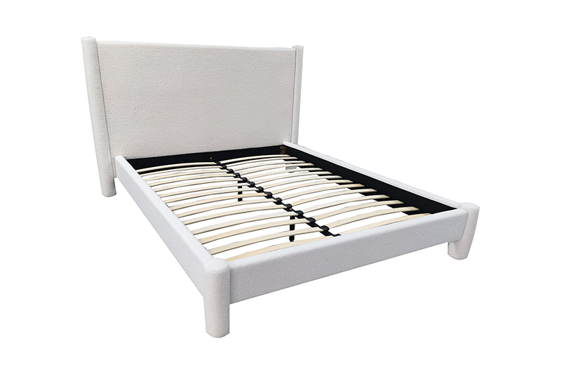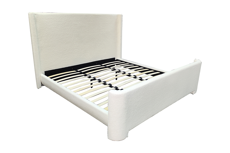 Modern Curved Edge Upholstered Bed Frame in White Bouclé – Bestselling bed