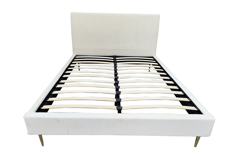 Elegant Minimalist Upholstered Bed Frame – Vertical Stitch Headboard with Gold Legs